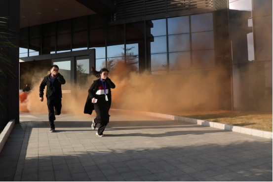 隨著煙霧彈的燃起,應(yīng)急預(yù)案啟動(dòng),逃生演練正式開(kāi)始。